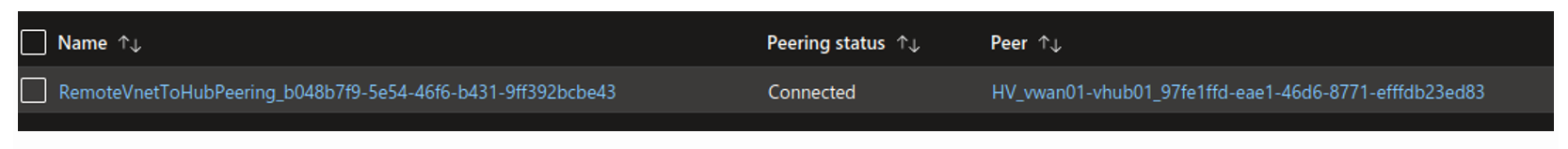 Parce que le peering est géré à travers le Virtual Hub, il est différent d’un peering standard, et son nom ne reflète pas le nom de la Network Connection coté Virtual Hub.