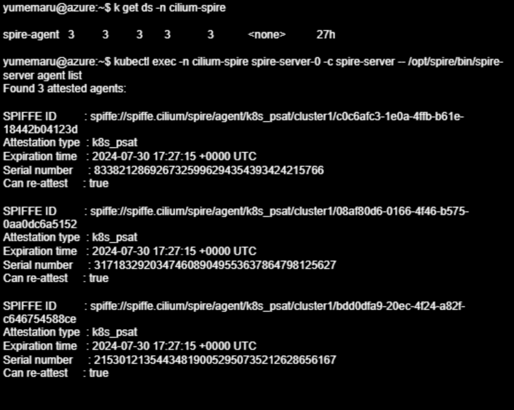 Avant de commencer nos tests, examinons le serveur SPIRE. La documentation de Cilium relative à l’authentification fournit quelques commandes.
