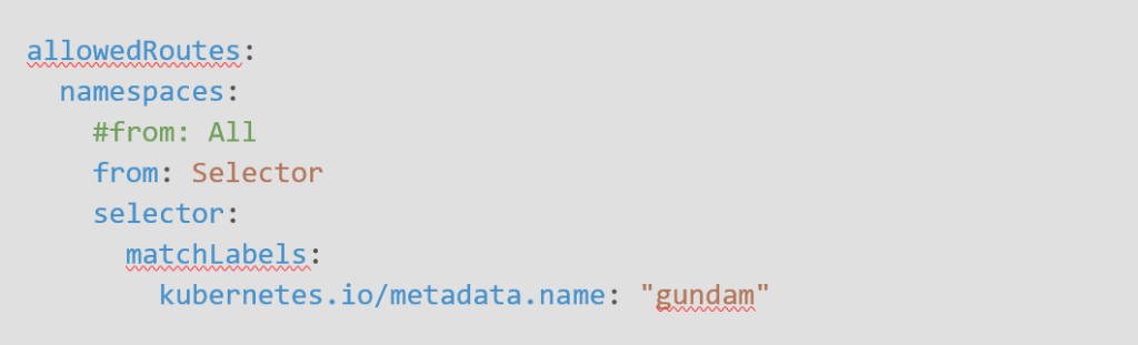 Il ressort que l’on peut sans trop de difficultés définir quels namespaces peuvent être autorisés à utiliser une Gateway.