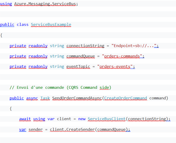 Exemple de code – Pattern CQRS avec Service Bus