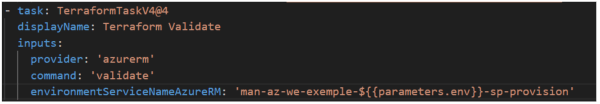 Le fichier azure-pipelines.yml, situé à la racine du dépôt, constitue le point d’entrée de la pipeline CI/CD. Il référence un ou plusieurs templates YAML centralisés, généralement placés dans .azure/pipelines/, tels que stage.yml, où sont définis les jobs standards : init, validate, plan, apply.