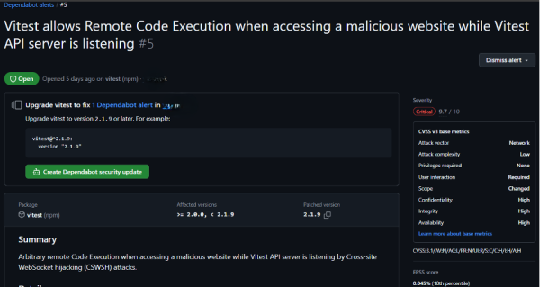 It is GitHub’s built-in tool for monitoring. It automatically scans dependency files and alerts users if a security vulnerability, or an outdated package version, is found.